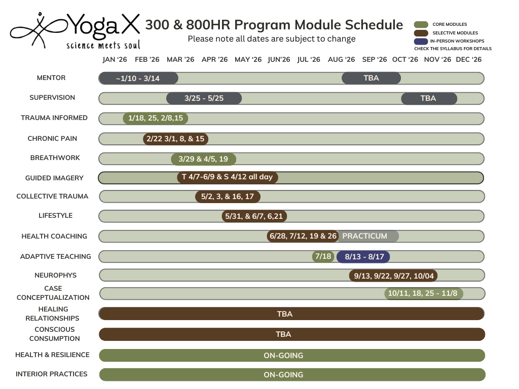 2026 YogaX Advanced Training Schedule